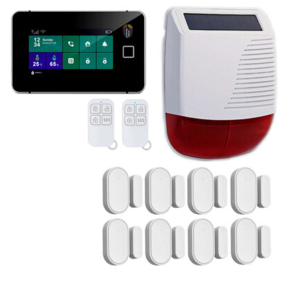 In caso di attivazione dell’allarme, la sirena interna dell’hub suona 80dB in loco, una sirena esterna o wireless opzionale suona a 100dB verrà inviata una notifica push sul cellullare tramite l’APP gratuita e in caso di inserimento di una sim mobile verrà inviata una chiamata o un sms di allarme a tutti gli utenti registrati. Il sistema può essere inserito/disinserito in loco tramite il telecomando, l’impronta digitale, il pannello a sfioramento, il tag remoto in dotazione o in remoto da qualsiasi luogo con applicazione mobile gratuita dedicata. Se l’edificio ha perso energia elettrica, la batteria di backup integrata nell’hub fornisce alimentazione per diverse ore. La schermata iniziale mostra la temperatura e l’umidità correnti ottenute dai servizi di localizzazione. La centrale supporta fino a 40 descrizioni di nomi sull’app, altri sensori saranno identificati con il numero di zona.